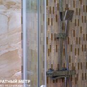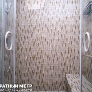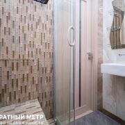 Ванная комната оборудована душевой кабиной с трапом, умывальником, зеркалом, стиральной машиной, облицована керамогранитной плиткой.