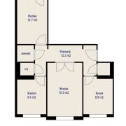 Площадь квартиры по СНБ 65.0 м.кв., общая 63.3 м.кв., жилая 37.1 м.кв., кухня 8.8 м.кв.