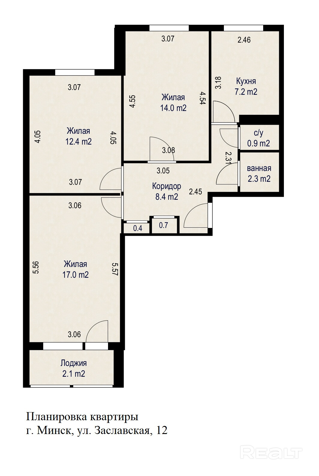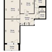 Общая площадь  63,3 кв. м.,  жилая площадь  43,4 кв. м, кухня  7,2  кв. м.  высота потолков 2.57 м.