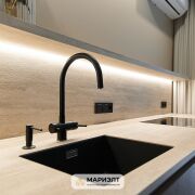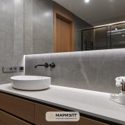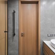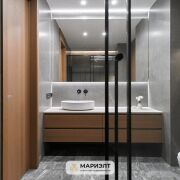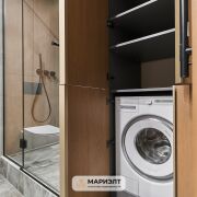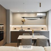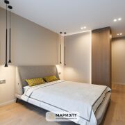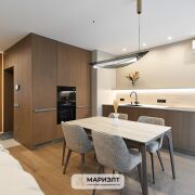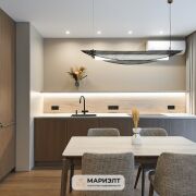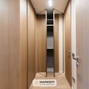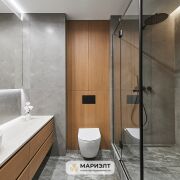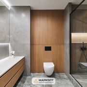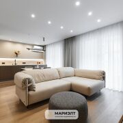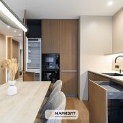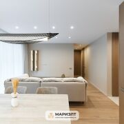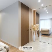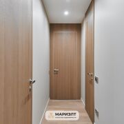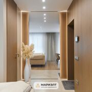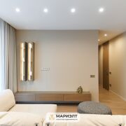В квартире: мебель изготовлена по индивидуальному проекту компанией Domani из шпона дуба+ керамогранит Inalco (премиум Испания). Дери изготовлены компанией Lazio. Паркет на полу. В сан/узле + пол керамогранит, фуга эпоксидная, сантехника встроенная, инсталляция TECE (Германия), встроенный трап в плитку. В квартире предусмотрено несколько режимов освещения со скрытыми Led подсветками в мебели. Мастер-выключатель.