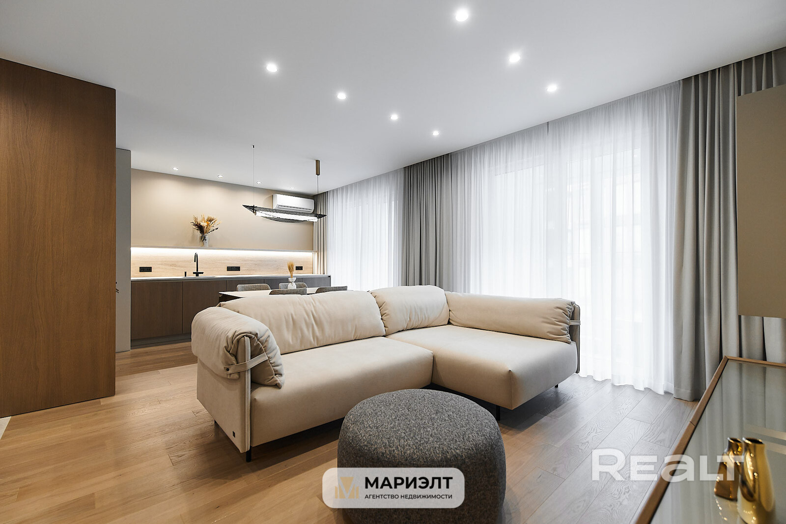 Квартира с удобной для жизни планировкой, состоит из просторной кухни - гостиной , гардеробной в коридоре, 2 изолированные комнаты, одна из которых мастер-спальня с гардеробной и собственным санузлом. Квартира очень светлая и теплая.