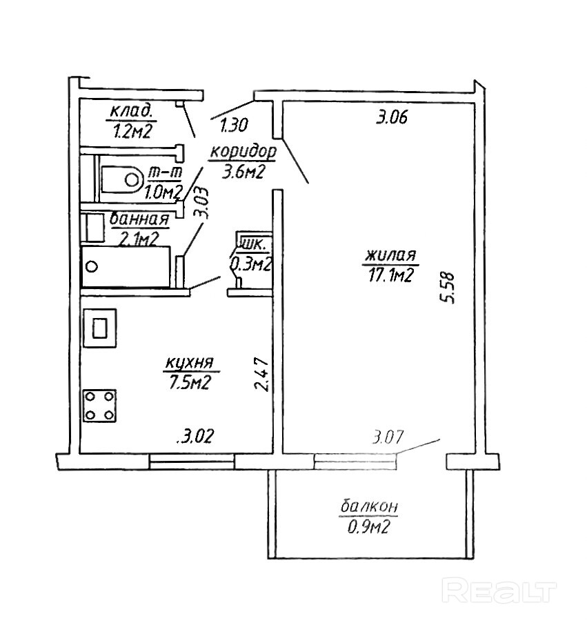 17.1 м²