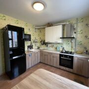 Кухня – 10,2 м2, правильной геометрической формы. Оборудована встроенной мебелью, варочной газовой поверхностью Bosch, духовым шкафом Bosch, посудомоечной машиной 45 см Bosch, вытяжкой Cata.