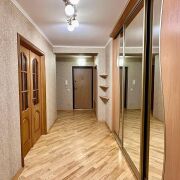 -На входе установлена металлическая дверь, а для хранения вещей предусмотрен просторный шкаф-купе в коридоре.