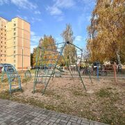 -Двор ухоженный и зелёный, есть детская площадка, что делает его идеальным местом для семей с детьми. А для владельцев автомобилей предусмотрены парковочные места.