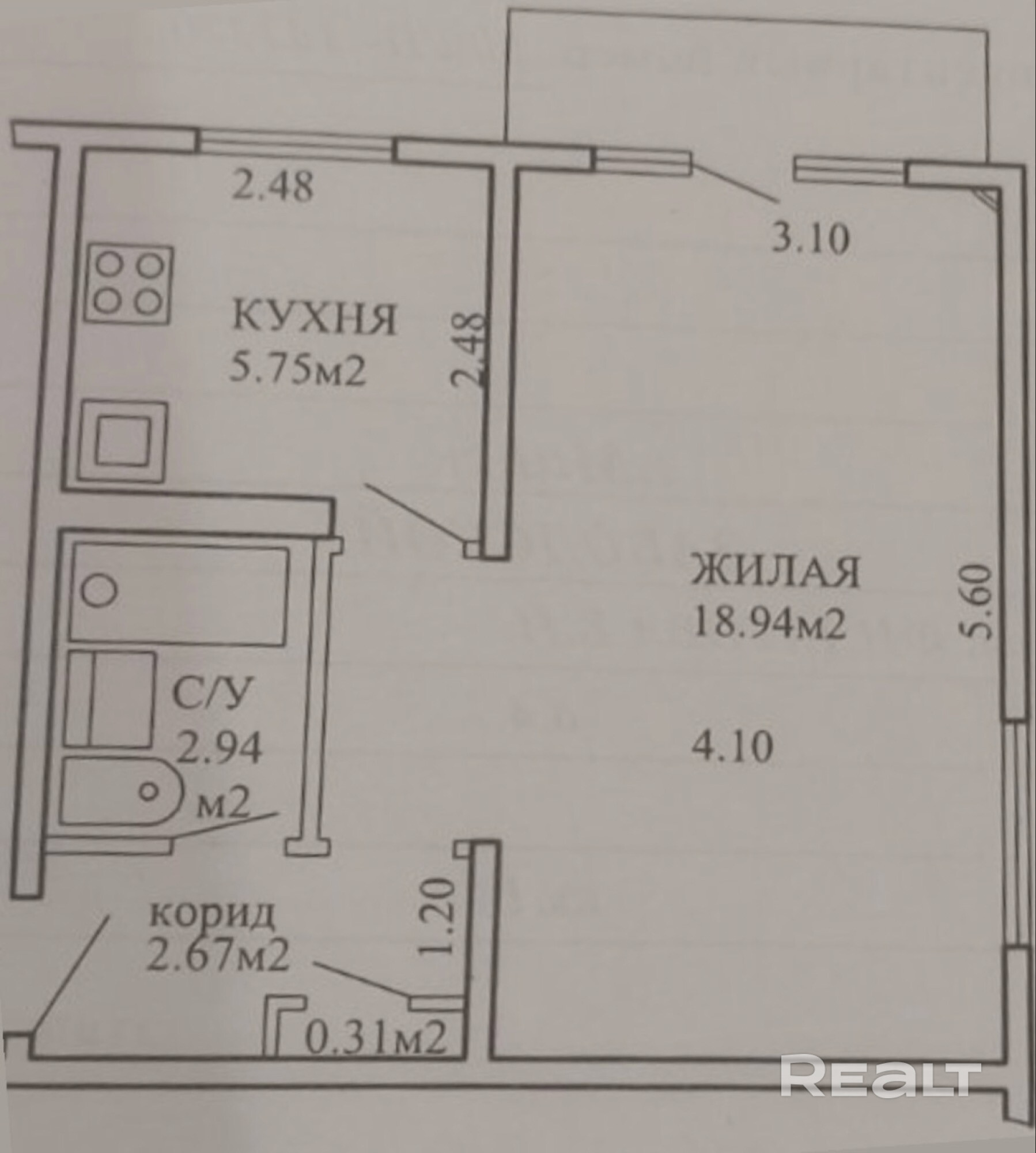 18.94 м²