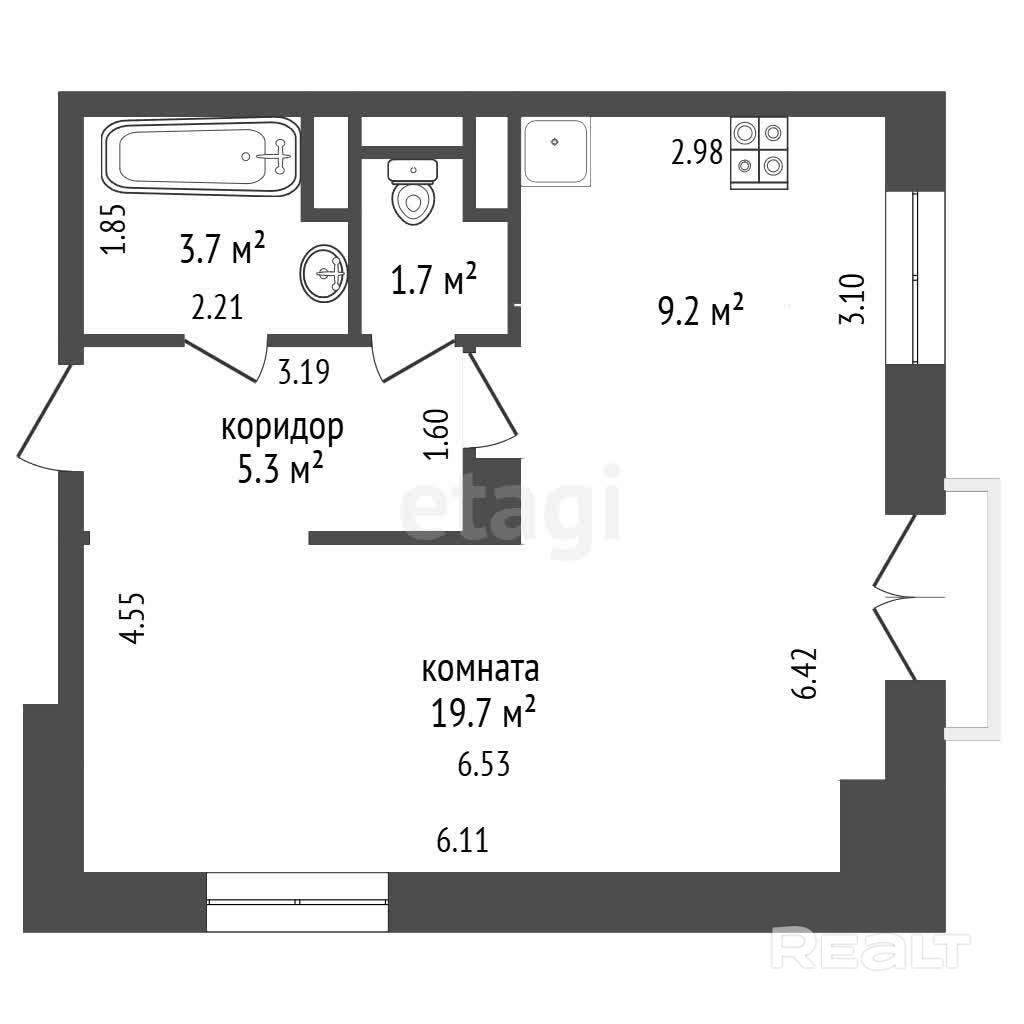 19.7 м²
