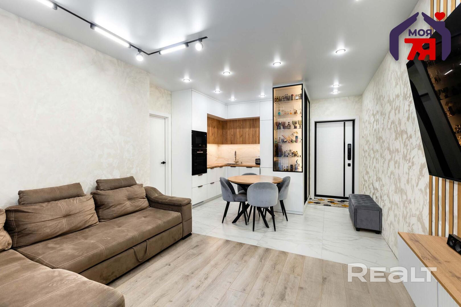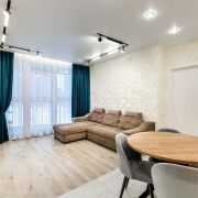 -Квартира полностью готова к проживанию: современный ремонт, встроенная кухня и шкафы создают гармоничную атмосферу.