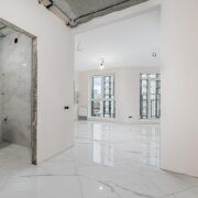 -В квартире выполнен отличный ремонт. Напольное покрытие - испанский керамогранит крупного формата, стены выровнены и подготовлены под финишную отделку, потолки фактически во всей квартире выровнены и окрашены.
