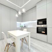 Кухня укомплектована всей необходимой бытовой техникой: Варочная панель - Maunfield, духовой шкаф – Indesit; вытяжка – Exiteq; посудомоечная машина-Indesit.