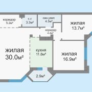 - Просторная 3-комнатная квартира с продуманной планировкой и общей площадью 89.9 м2