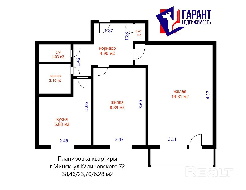 В продаже 2-комнатная квартира около метро Восток по адресу ул. Калиновского 72.