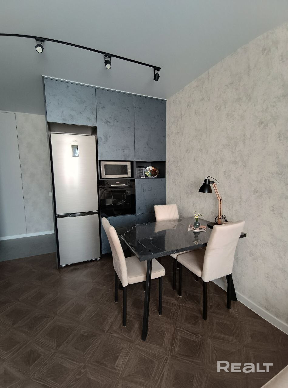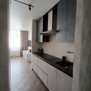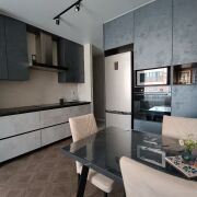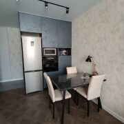 - Просторная кухня-гостиная оснащена необходимой  техникой европейских производителей (установлены индукционная плита, духовой шкаф, холодильник, микроволновая печь), все на гарантии