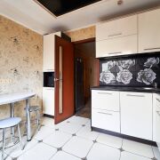 Жилая площадь квартиры составляет по СНБ 61.7м2. Комната с выходом на застекленную лоджию 12,8м2 и вторая изолированная комната также с выходом на застеклённую лоджию площадью 17.3м2. Ещё одна комната 10.1м2. В квартире установлены новые стеклопакеты, на полу паркет. Просторная кухня площадью 8.2м2, укомплектована газовой плитой, новым кухонным гарнитуром и обеденной зоной. Раздельный санузел, подключена стиральная машина.