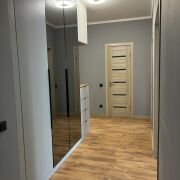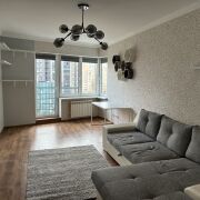 Продаётся стильная двухкомнатная квартира с дизайнерским ремонтом в доме 2012 года с подземным паркингом. Планировка включает прихожую, кухню, гостиную, спальню, раздельный санузел, лоджию и два балкона. Квартира полностью меблирована, оснащена техникой Bosch и встроенной мебелью на заказ. В ванной есть окно, вместительная мебель, бойлер и стеклянная перегородка.