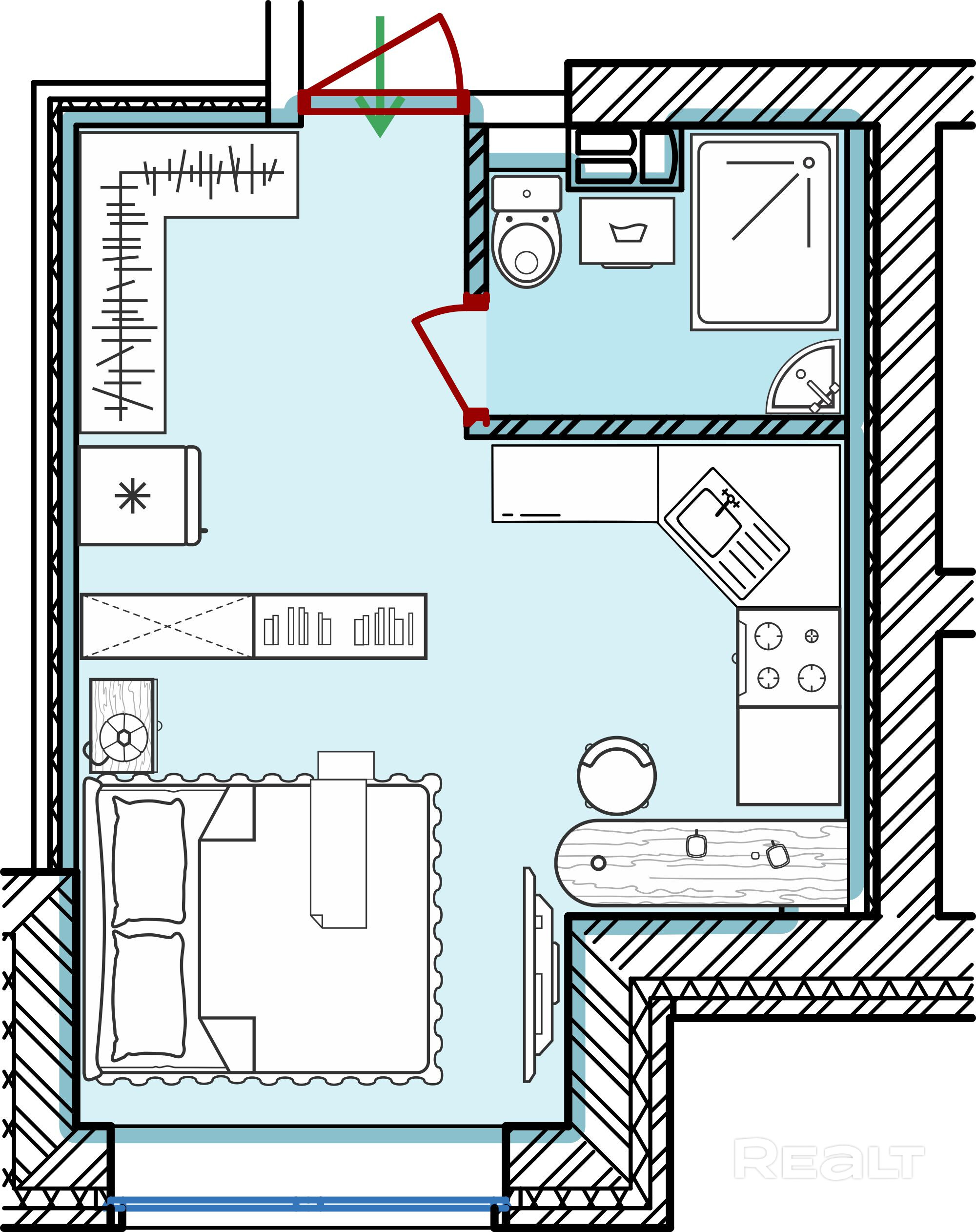 - Выход на лоджию из кухни
