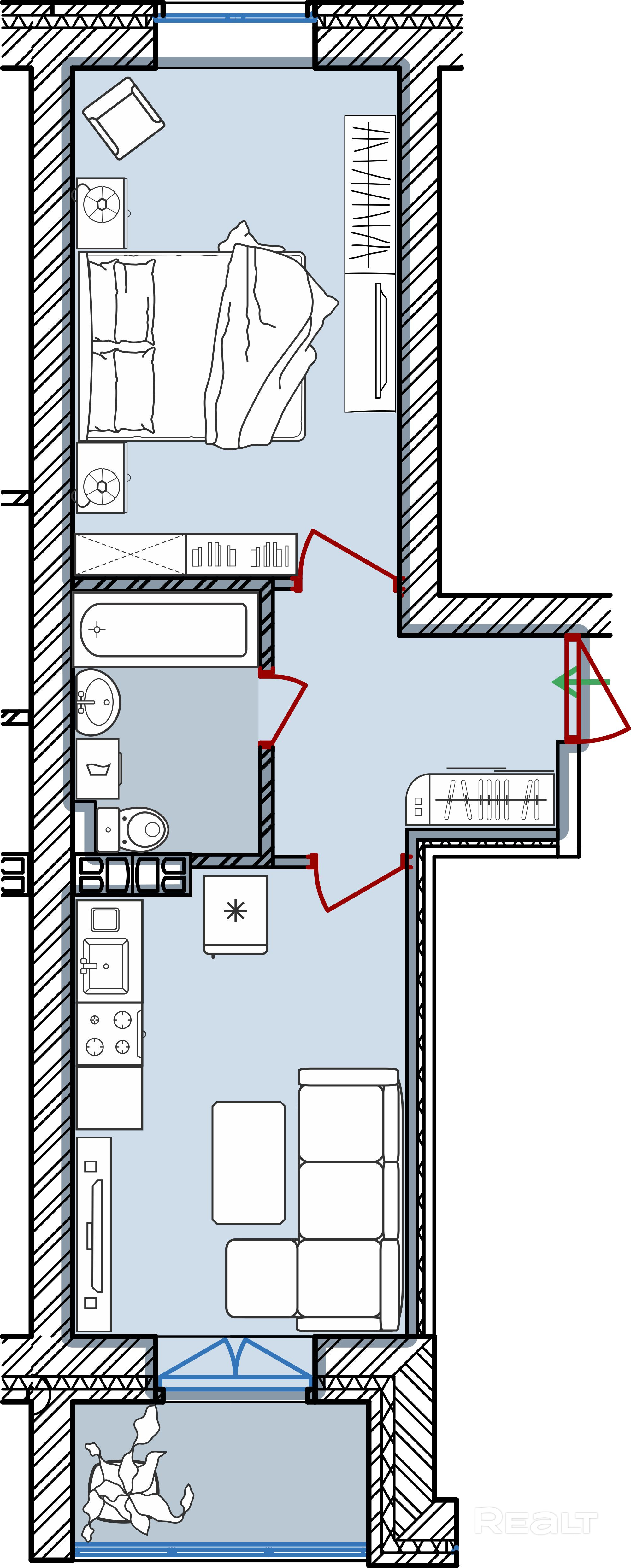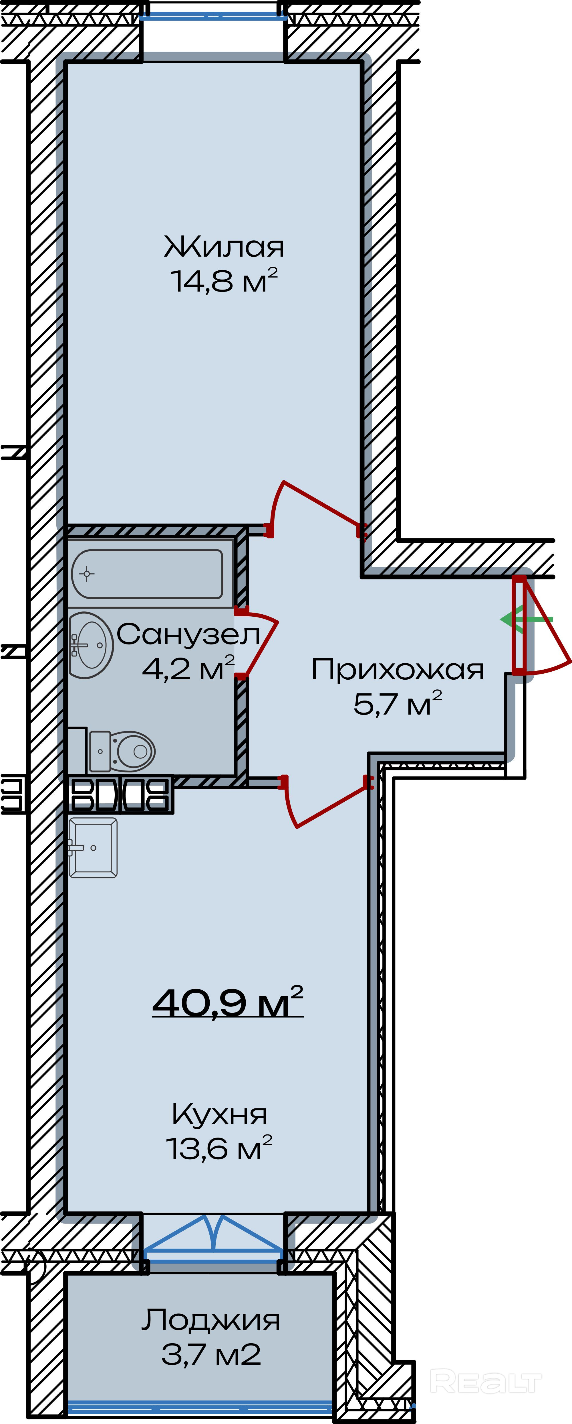 • Выход на лоджию из кухни