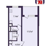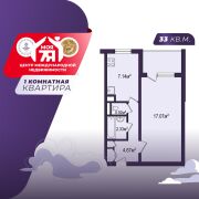 -1‑комнатная квартира 33 м2 (жилая 17,07 м2) на 9 этаже 9‑этажного дома. Последний этаж гарантирует естественный свет и спокойствие за счет отсутствия соседей сверху.