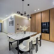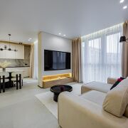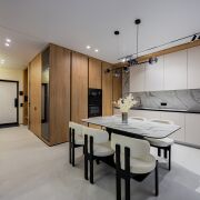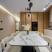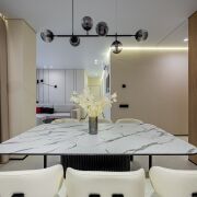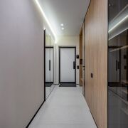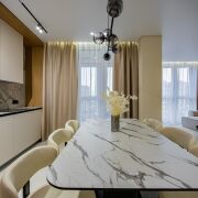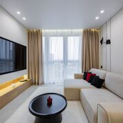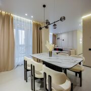 • Потолки: Изящные натяжные потолки с эффектным освещением, которые наполняют пространство изысканной атмосферой.