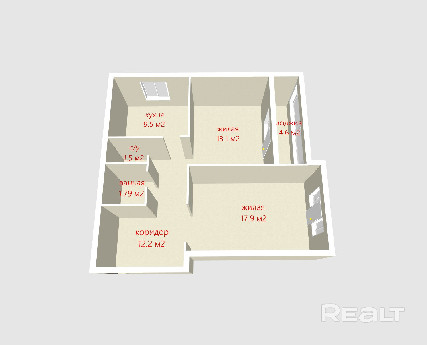 Две изолированные комнаты, большой коридор, светлая, просторная кухня, раздельный санузел, установлены качественные окна ПВХ.