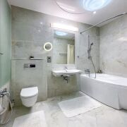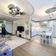 Предлагается просторная 3-х комнатная квартира общей площадью 103,2 м2 (СНБ). Есть возможность дополнительно приобрести машиноместо в подземном паркинге. Выполнен качественный дизайнерский ремонт по авторскому проекту. Интерьер оформлен в лаконичных светлых тонах с некоторыми акцентами. На полу паркетная доска. Продумано множество сценариев освещения. Дизайнерские итальянские светильники.Планировка включает в себя:- просторную гостиную с зоной TV и кухней-столовой (32,6 м2) ;- хозяйскую спальню (18,9 м2); - жилую комнату (19 м2), которая может использоваться как детская/кабинет/вторая спальня;- санузел (6,8 м2) с ванной, унитаз-инсталляция + гигиенический душ;- гостевой санузел совмещённый с постирочной зоной (5,4 м2);- коридор (16,7 м2);- гардеробная - утепленная лоджия с подогревом пола (5,4 м2)Квартира укомплектована всей необходимой мебелью и техникой для комфортного проживания и даже больше: 4 телевизора, встроенная акустическая система KEF в гостиной и спальне, варочная панель, холодильник, посудомоечная машина, духовой шкаф, вытяжка, стиральная и сушильная машины, бойлер, кондиционеры в каждой жилой комнате. Теплые полы в зоне плитки.Техника представлена такими именитыми брендами как: Liebherr, Bosch, KEF, Mitsubishi.Дзержинского, 119 – престижный дом в одной вблизи станции метро "Малиновка". В доме поземный паркинг и гостевая парковка со шлагбаумом. Удобный вход в подземный паркинг рядом с подъездом. Видеонаблюдение по периметру дома и в подъездах. В пешей доступности все необходимое: школы и детские сады, парк Победы, супермаркет, продовольственные магазины, аптеки, банки, спа и многое другое.