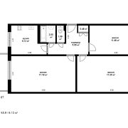 Общая площадь по СНБ — 62.02 м2, жилая — 45.9 м2, кухня — 6.13 м2. Удобная планировка: изолированные комнаты, окна выходят на две стороны, что обеспечивает хорошее естественное освещение и проветривание.