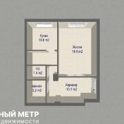 Отличная планировка: общая площадь – 41,9 м2, жилая площадь 16,6 м2, кухня 10,6 м2, санузел по проекту 4,6 м2. Изолированная комната правильной формы.