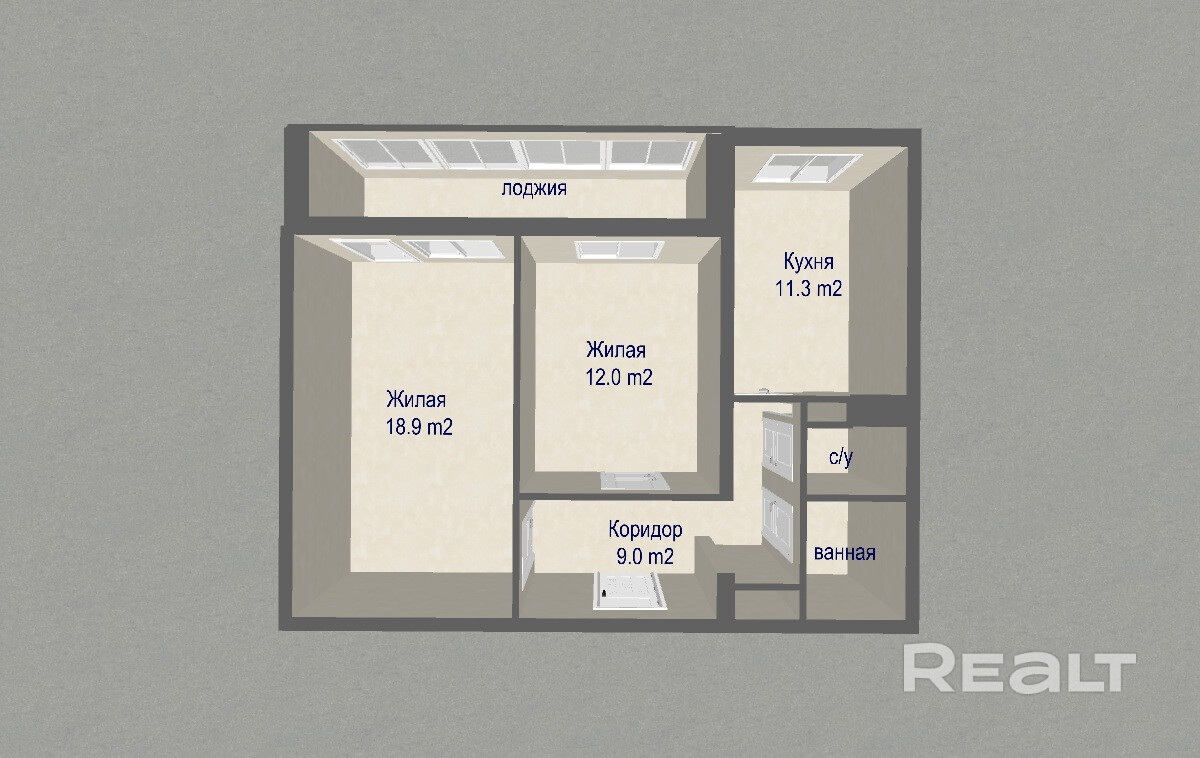 Большие комнаты общей площадью (39 м2) и вместительная кухня (11,3 м2) делают эту квартиру идеальным вариантом для семьи.