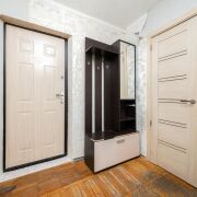 - В квартире выполнен аккуратный ремонт: установлена металлическая входная дверь, окна ПВХ, натяжные потолки, на полу — паркет и кафель. Пространство светлое и уютное, можно заехать и жить без дополнительных вложений.