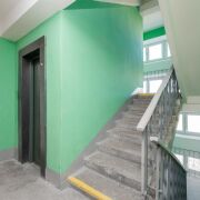- Придомовая территория благоустроена: есть парковочные места, зелёный двор, оборудованные детские площадки. Подъезд аккуратный и поддерживается в хорошем состоянии.