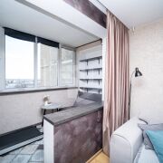 Квартира расположена на 5 этаже 9-этажного дома. В квартире выполнен хороший ремонт: встроенная кухня и встроенная мебель в жилой комнате и коридоре, на полу в жилой комнате площадью - 16,8 квадратных метра ламинат, в кухне площадью - 7,1 квадратных метра и коридоре площадью - 4,9 квадратных метра на полу плитка, в жилой комнате натяжной потолок. Установлены входная металлическая дверь и окна ПВХ, в ванной выполнена отделка плиткой, лоджия благоустроена и застеклена.