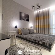 · Спальня в стиле soft-minimalism - установлена парящая кровать с эффектом левитации. Благодаря скрытому основанию и мягкой контурной подсветке создается ощущение легкости и дополнительного пространства.