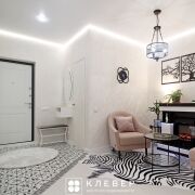 · Зона релакса с камином - уникальное решение в прихожей — просторная зона отдыха с камином. Это идеальное место для перезагрузки после рабочего дня. При необходимости можно оборудовать под кабинет.