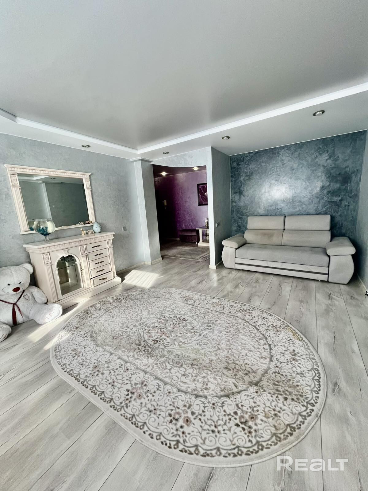 В квартире выполнен ремонт, натяжные потолки,пол ламинат и плитка, стены окрашены, комнаты выходят на одну сторону - во двор дома. Продажа с мебелью. В квартире также имеется гардеробная и два встроенных шкафа купе.