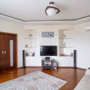 (отделка квартиры: на полу паркетная доска, итальянская плитка; межкомнатные двери Portadezaиз массива, не царапаются; стены окрашены, покрыты декоративной штукатуркой, обоями; санузлы – качественная отделка и сантехника GROHE; теплые полы)