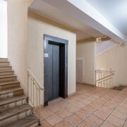 Большой тамбур на 2 квартиры. Широкие этажные площадки, лестничные марши.