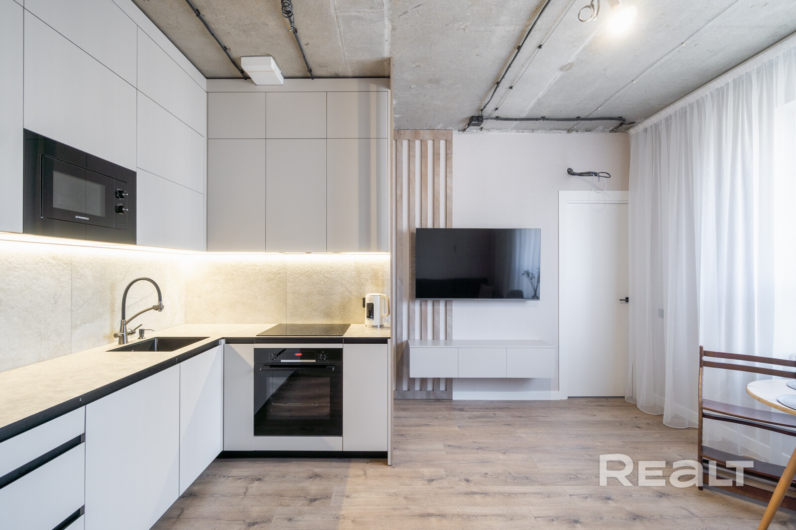 В квартире - три отдельные комнаты и просторная кухня-гостиная. Комфорт, уют и функциональность реализованы за счет уникального дизайна, качественной отделки и других инженерно-технических решений. Продумана каждая мелочь. Установлена массивная входная металлическая дверь. Все межкомнатные двери - с магнитными защелками. Кухня выполнена по индивидуальному дизайнерскому проекту и оборудована всей необходимой новой встроенной бытовой техникой: холодильником, микроволновой печью, духовым шкафом, варочной панелью, вытяжкой, посудомоечной машиной. Современная ванная комната. Вас обязательно порадует наличие бойлера в санузле. Получена разрешительная документация и сделан вывод для установки кондиционера. В квартире - современный электрический щит с автоматическими выключателями. Группы электроснабжения разделены - розеточные линии, освещение и отдельные линии для мощных потребителей. На полах - импортная керамическая плитка и ламинат высокого качества. Ремонт в светлых пастельных тонах придаёт квартире постоянное ощущение свежести и пространства. Мебель в квартире делалась по индивидуальному заказу.