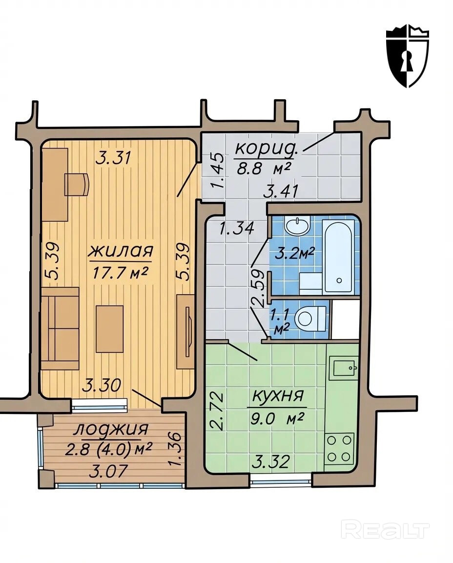 Жилая площадь 17,7 м2, кухня 9 м2, лоджия, раздельный с/у, просторный коридор. Аккуратный ремонт, большие окна, квартира полностью готова к заселению. На этаже просторная кладовая.