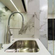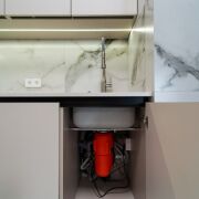 Столешница выполненная из кварцевого агломерата, оснащена мойкой омойкири подстольного монтажа