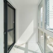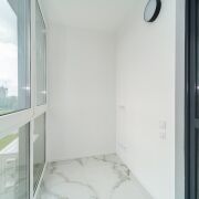 Балкон утеплён, на полу керамогранит и система «тёплый пол», можно использовать как кабинет в зимнее время.