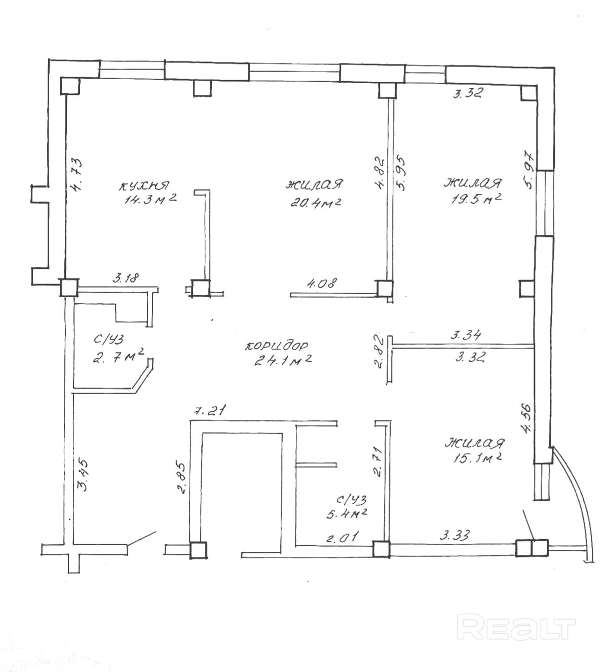 Общая площадь – 101,3 м2 (по СНБ 102,3 м2)