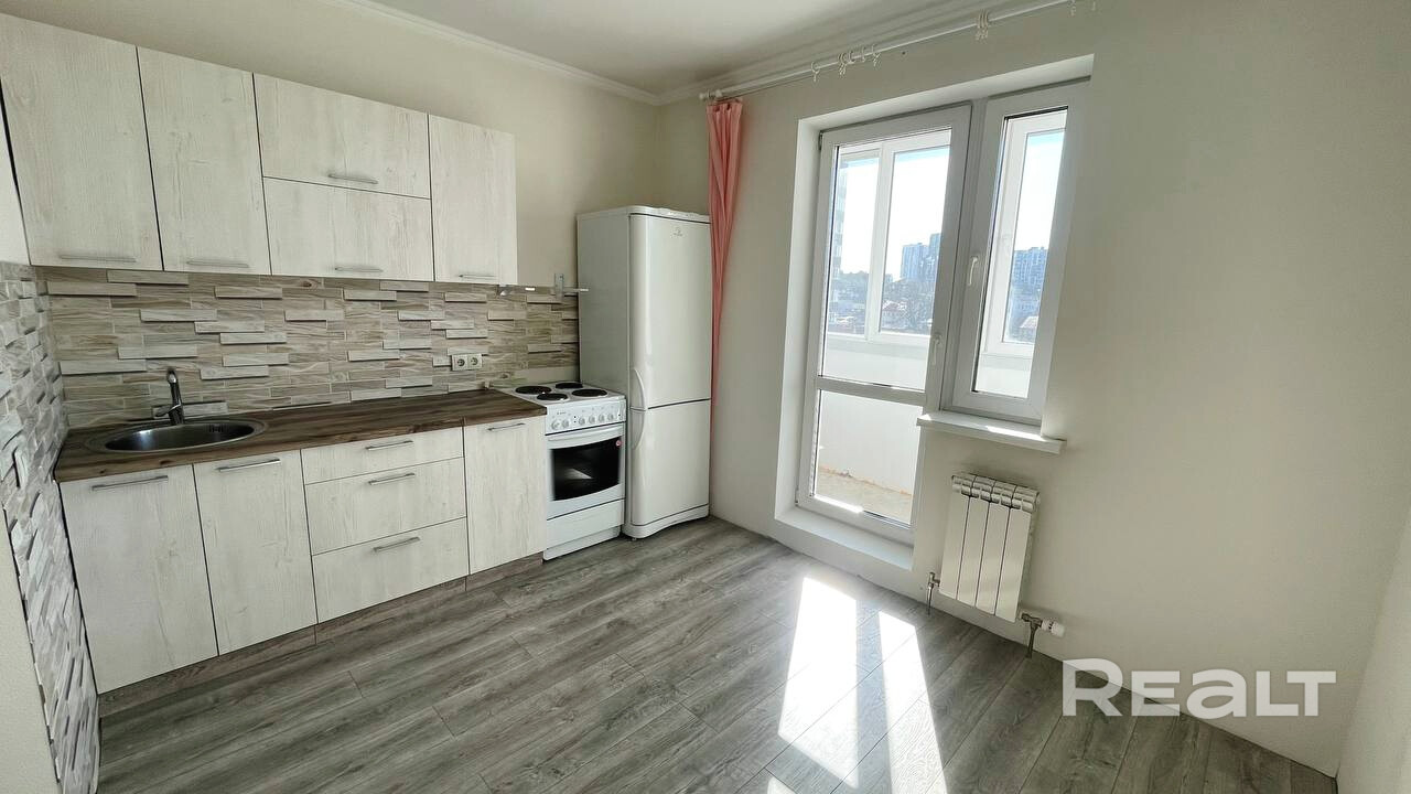 Светлая теплая квартира, просторная кухня 10.3 кв.м с лоджией, раздельный санузел, потолки 2.66м., электрическая плита, ламинат, есть возможность оборудовать кладовую-гардеробную, застеклённая лоджия, металлическая дверь, полы, потолки, ванная и навесная кухня уже сделаны, видеонаблюдение, грузовой лифт, развитая транспортная и социальная инфраструктура, зелёная зона,15 минут до станции метро Уручье на общественном транспорте