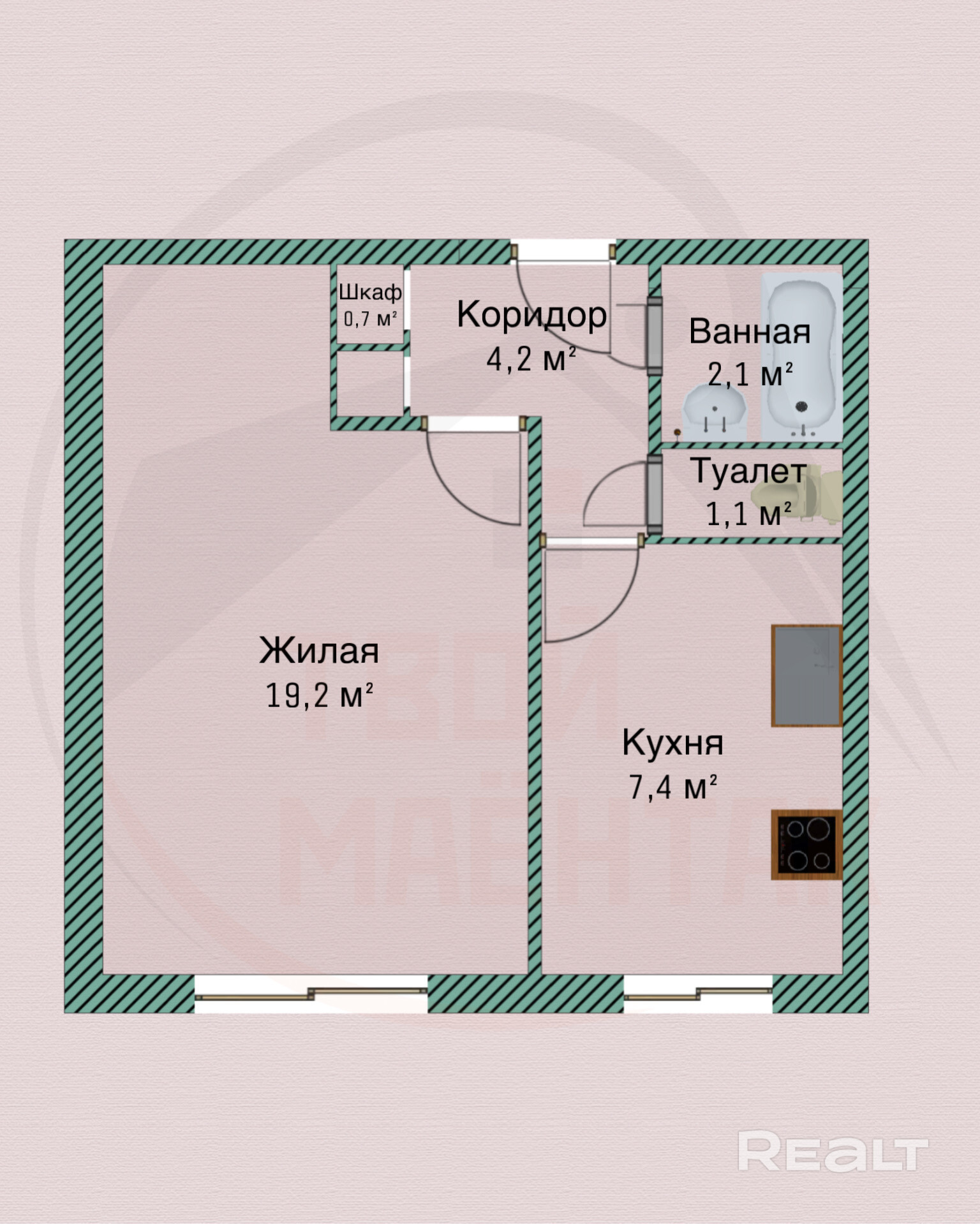 Общая площадь: 34,7 кв.м.,
