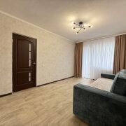 Квартира расположена на 5 этаже 9-ти этажного дома 1996 года. Общая площадь квартиры по СНБ (с лоджией) 49,1 кв.м. Кухня 7,1 кв.м.(установлена электрическая плита); жилая комната 17,1 кв.м, с выходом на застекленную лоджию; жилая комната 11.4 кв.м., раздельные - санузел и ванная комната. Потолки 2,55 м.