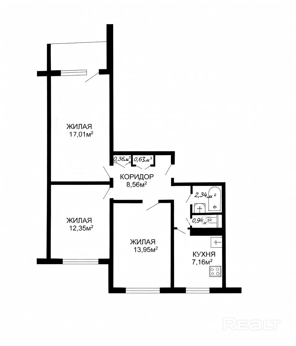 Трёхкомнатная квартира около метро Неморшанский сад!