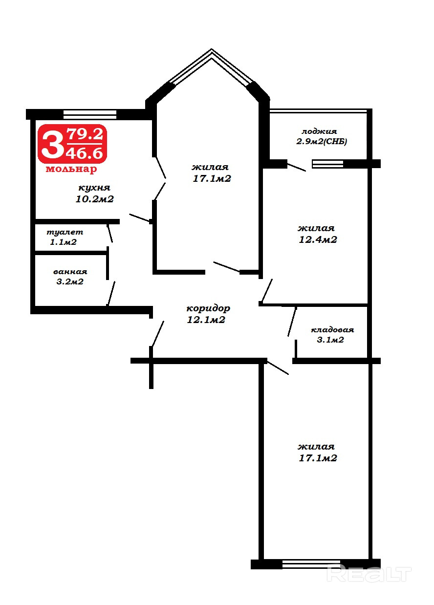 Роскошная планировка: 3 изолированных комнаты, кладовая, и кухня площадью 10.2 м2-мечта любой хозяйки!