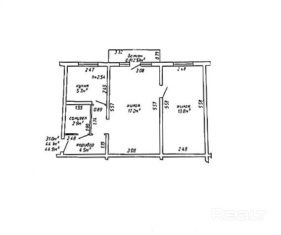 44.9 м²