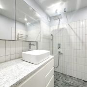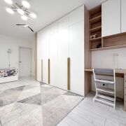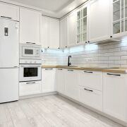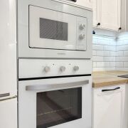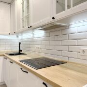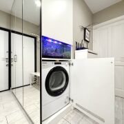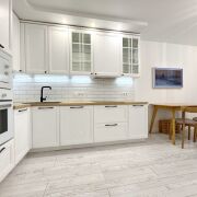 · Кухонная техника: Вся необходимая встроенная техника премиум-класса: индукционная варочная панель Bosch, духовой шкаф и микроволновая печь Maunfield, вытяжка, посудомоечная машина Hotpoint Ariston.