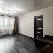 • На полу во всех помещениях ламинат. Потолок в гостиной, ванной и с/узле натяжной, в остальных помещениях окрашен.
