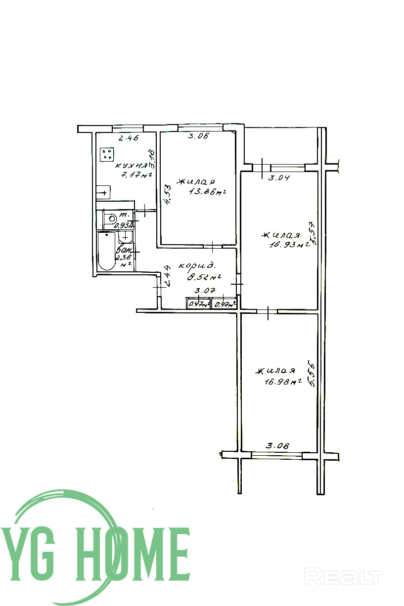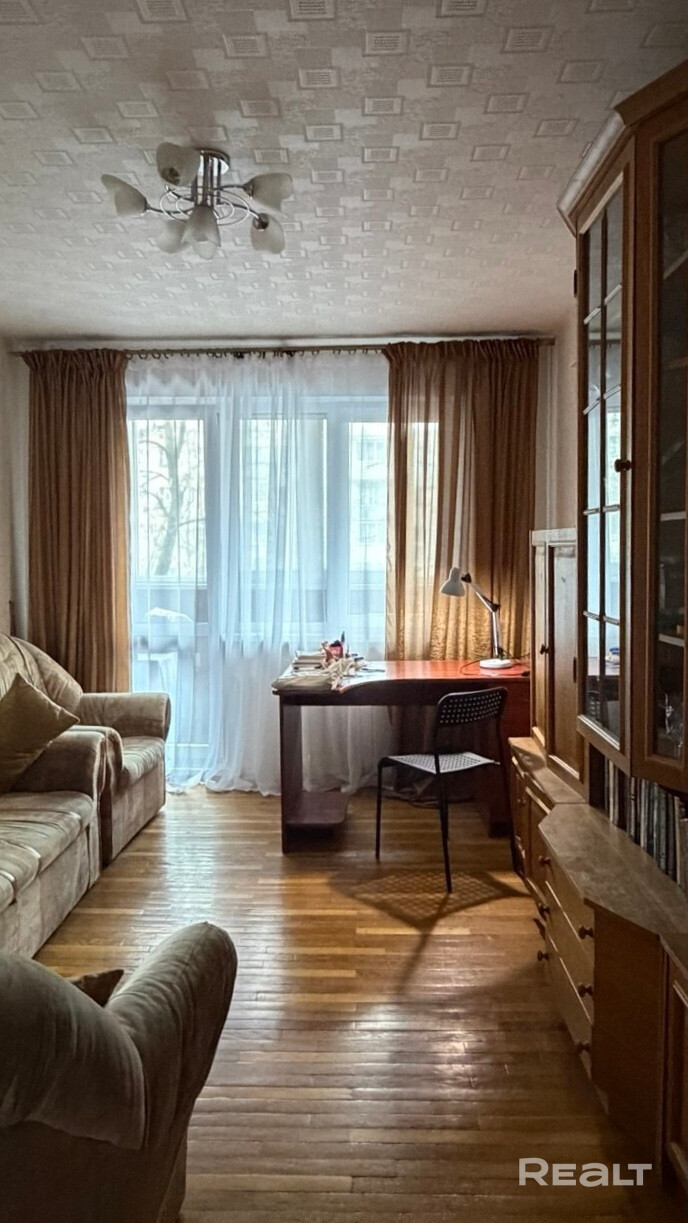 Трёхкомнатная квартира у метро Восток. Общая площадь по СНБ 69,79м2/общая 67,69м2/жилая 47,77м2/кухня 7,17м2. Окна выходят на 2 стороны дома. 1 спальня на пр-т Независимости, а остальные в тихий зеленый двор. Две лоджии. Топовая локация - в метро хоть из балкона заскакивай!-:).